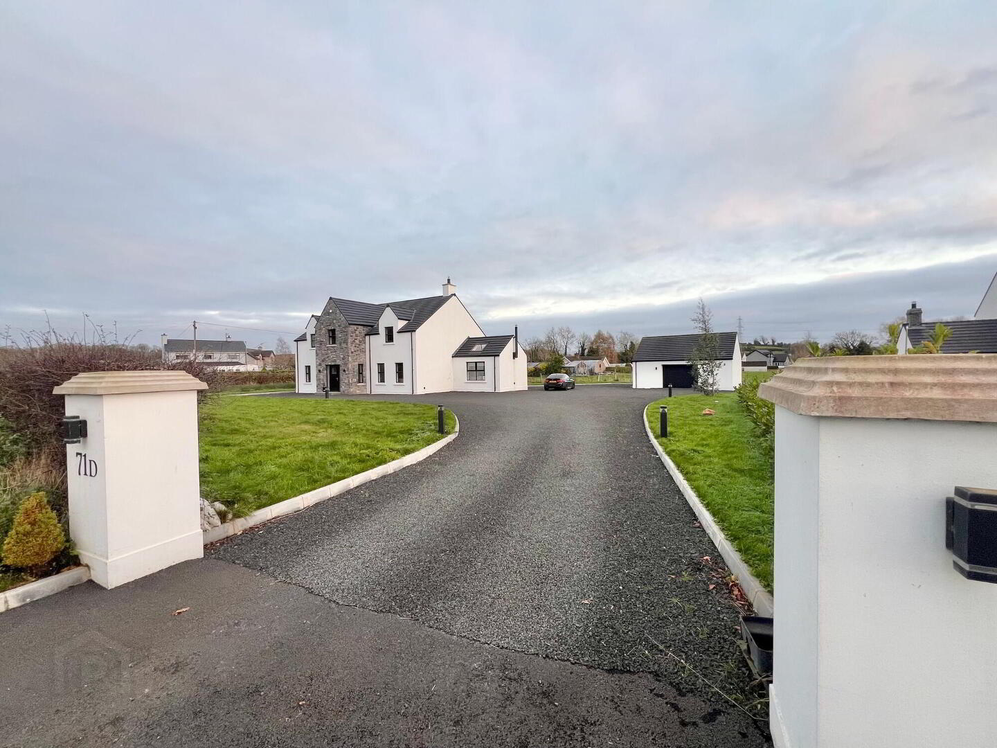 This superbly finished and most impressive five bedroom detached family home benefits from a large spacious site with detached garage. Built in 2023, No 71d provides well proportioned family accommodation, to include modern design features such as open plan kitchen & dining leading to sun lounge, five large bedrooms (two with en-suite), two family bathrooms, two reception rooms, spacious utility room and separate boot room. Architect designed ground floor layout to allow for self contained living/granny flat as part of property. Externally, gardens are laid in lawn to the front, side and rear with feature entrance pillars and stone driveway with good parking. Exterior lighting, hedging and boundary fencing. Exceptionally well located on the Roguery Road a short distance from the Main A6 for easy commuting onwards to Magherafelt, Randalstown, Antrim Area Hospital, Belfast International Airport, Ballymena & Belfast. This is an exceptional property which is finished to a high specification throughout. To arrange a private viewing please contact our office on 028 7930 1116.