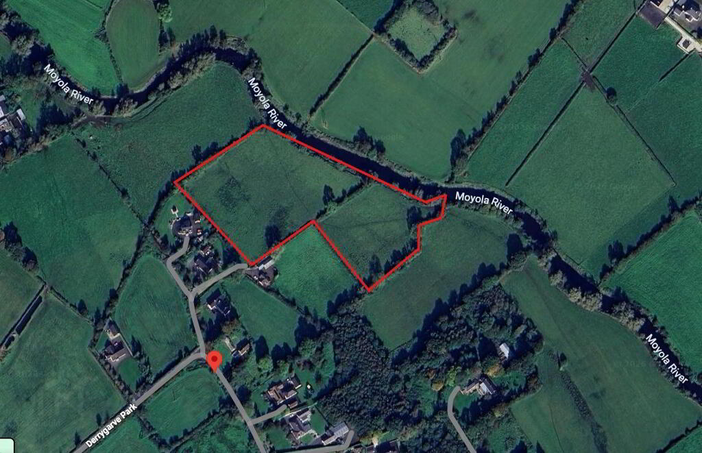 Fields 1 & 2 - C. 6.87 Acres in two fields. Land benefits from running along the border of the Moyola River and may be suitable for various recreational activity such as fishing and water sports. Access via shared laneway to land.
