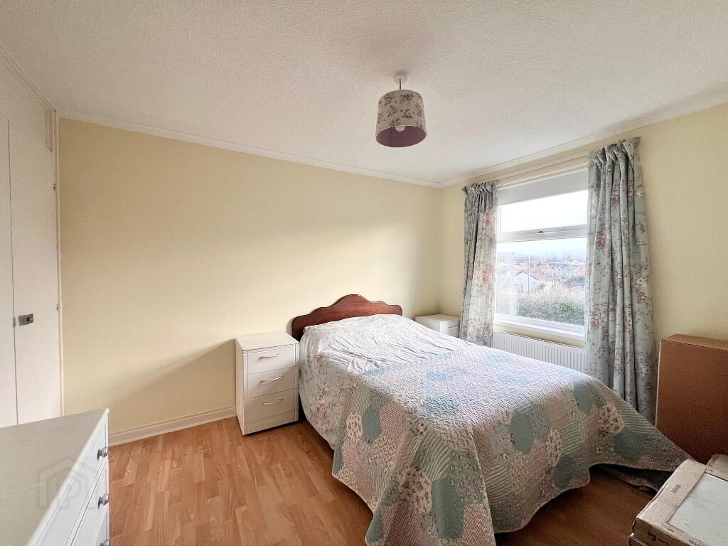 With laminate wood floor, feature electric fireplace, tv point, cornicing and centre rose.