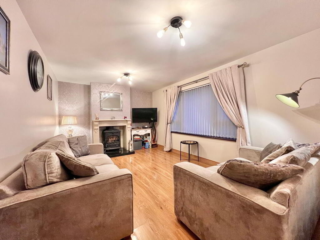 With feature fireplace and wood burning stove with back boiler, wood floor , tv point.