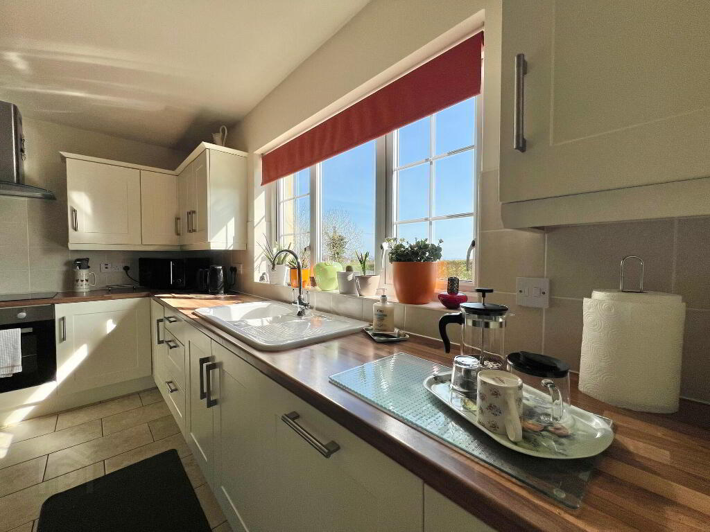 With an excellent range of eye & low level units, copper undermount sink unit, plumbed for washing machine, space for tumble dryer, recessed lights, floor fully tiled.