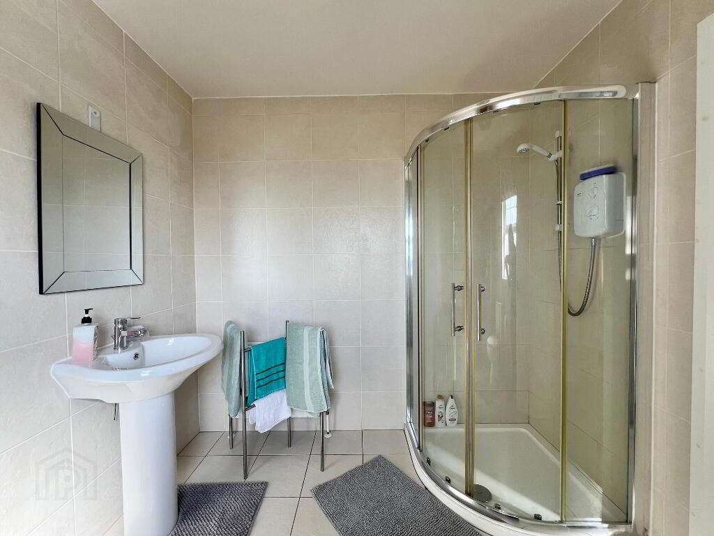 With carpet floor. En-suite with wc, whb, electric shower, walls part tiled, floor fully tiled. Dressing Room with carpet floor.