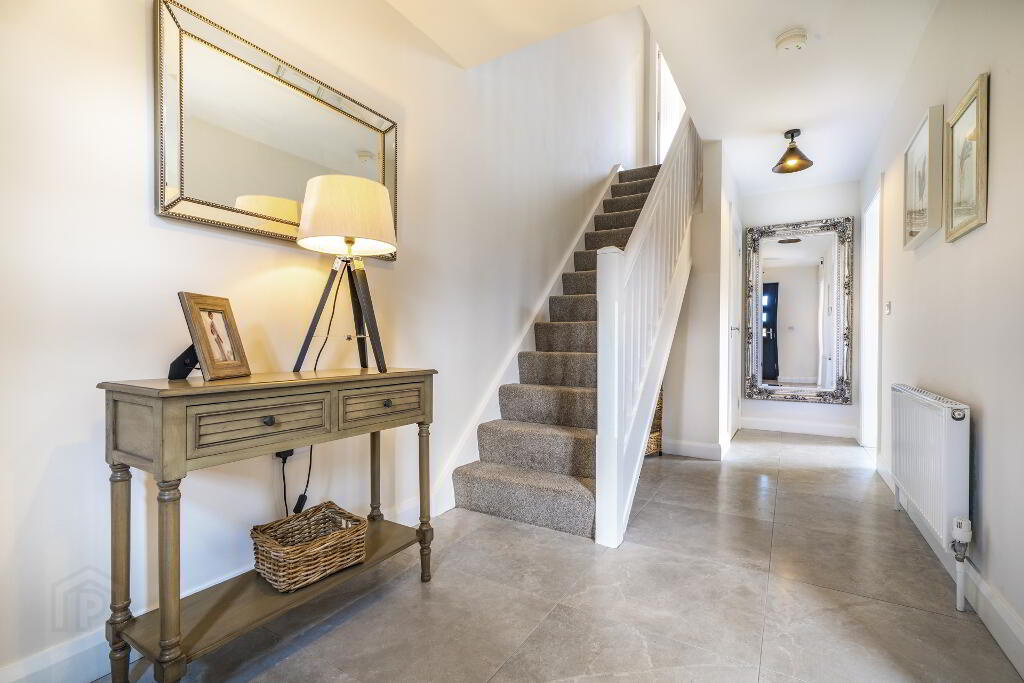 Tiled floor to kitchen areas, entrance hall, bathroom, ensuites and WC