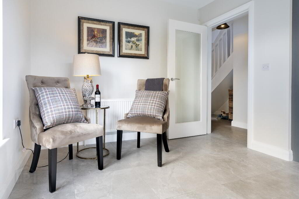 Comprehensive range of electrical sockets incorporating USB charging points, switches, TV and Telephone points. Wiring for future satellite points. Smoke, heat & carbon monoxide detectors. Energy efficient down lighting to Kitchen and Bathrooms. Feature external lighting to front and rear.