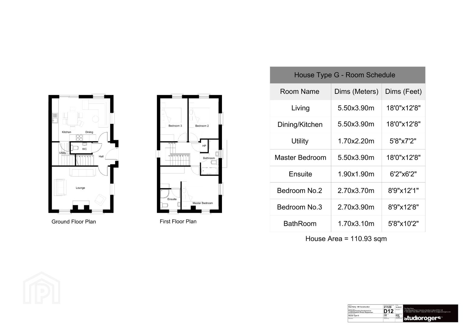 Mix of brick or render finishes depending on plot location