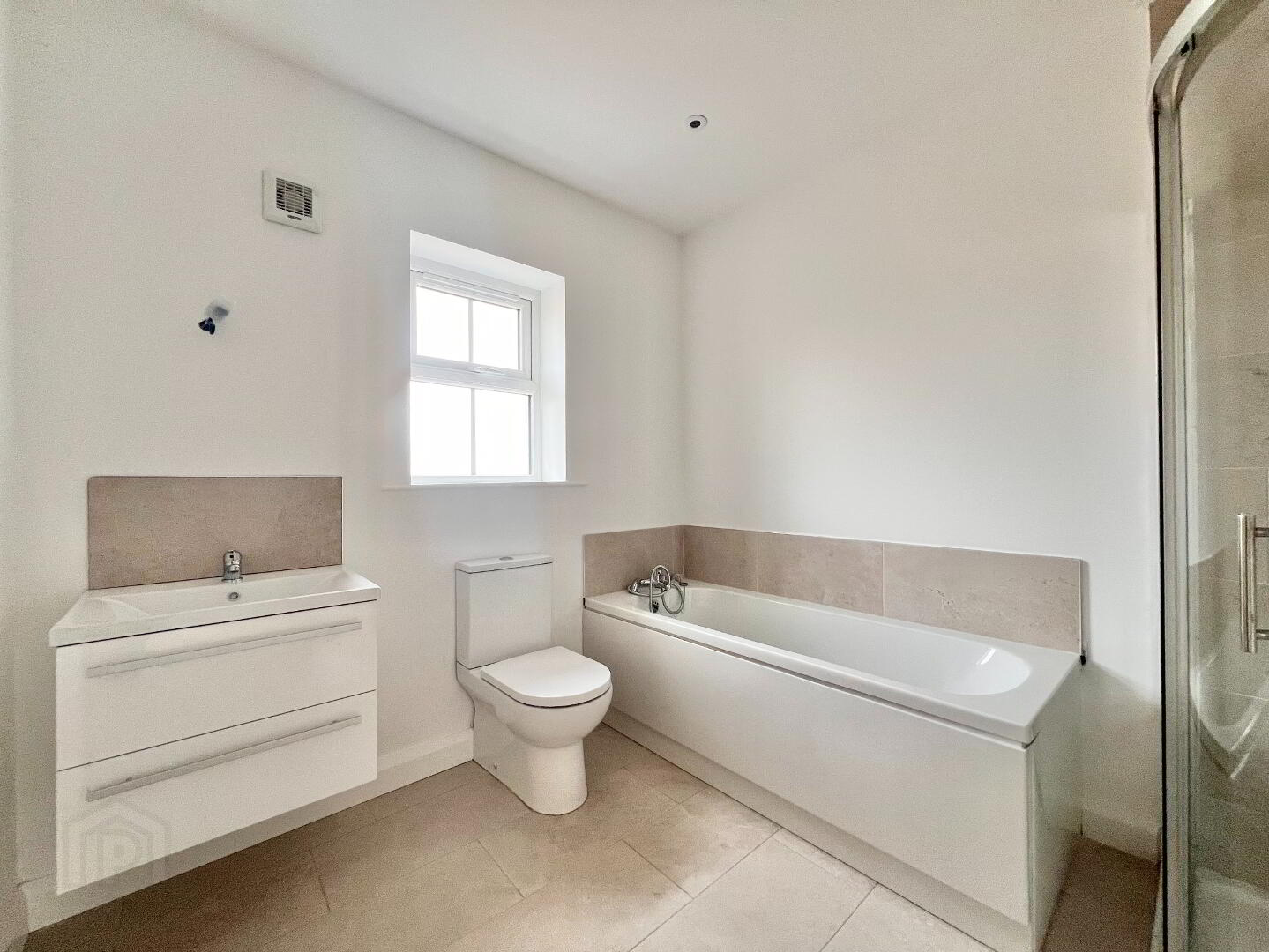 Splash back tiling around bath and above sinks in en-suite, bathroom and wc
